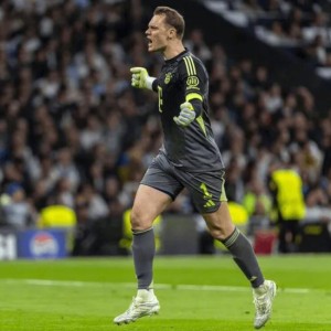 #皇马1比2拜仁# #欧冠[超话]# 本场比赛40岁诺伊尔表现出色,全场送出9次扑救。赛后,德国天空体育记者Floria...