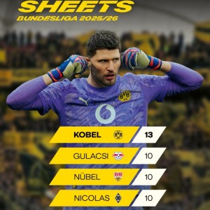 4月6日讯 多特门将科贝尔本赛季联赛完成13场零封,德甲门将零封场次最多。本赛季德甲门将零封场次排名:科贝尔(多特)——...
