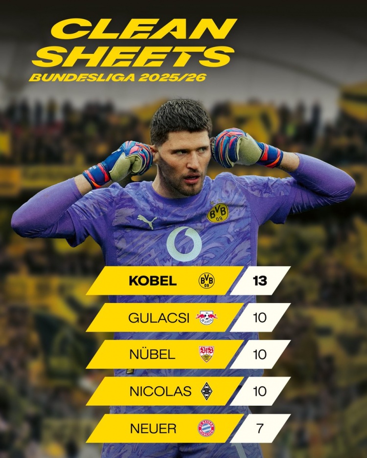 04月 09 2026 0 开云体育在线-本赛季德甲门将零封榜:科贝尔13场居首,努贝尔10场、诺伊尔7场 xiaoqiao 2026-04-09 德甲 29 4月6日讯 多特门将科贝尔本赛季联赛完成13场零封,德甲门将零封场次最多。本赛季德甲门将零封场次排名:科贝尔(多特)——13古拉茨(莱比锡)——10努贝尔(斯图加特)——10尼科拉斯(门兴)——10诺伊尔(拜仁)——7