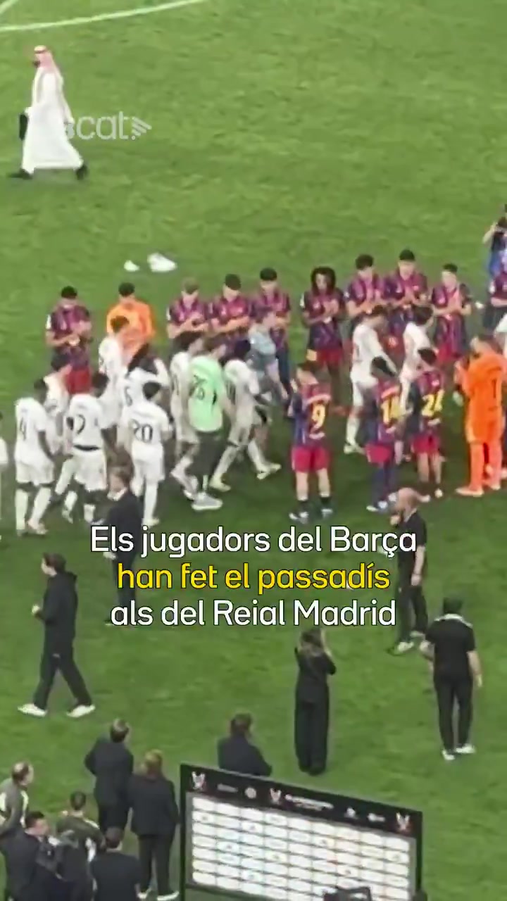 《阿斯报》发布的视频也显示,在巴萨球员捧杯时皇马球员们聚集在边线附近,待巴萨众将捧杯后他们就离开了场地。